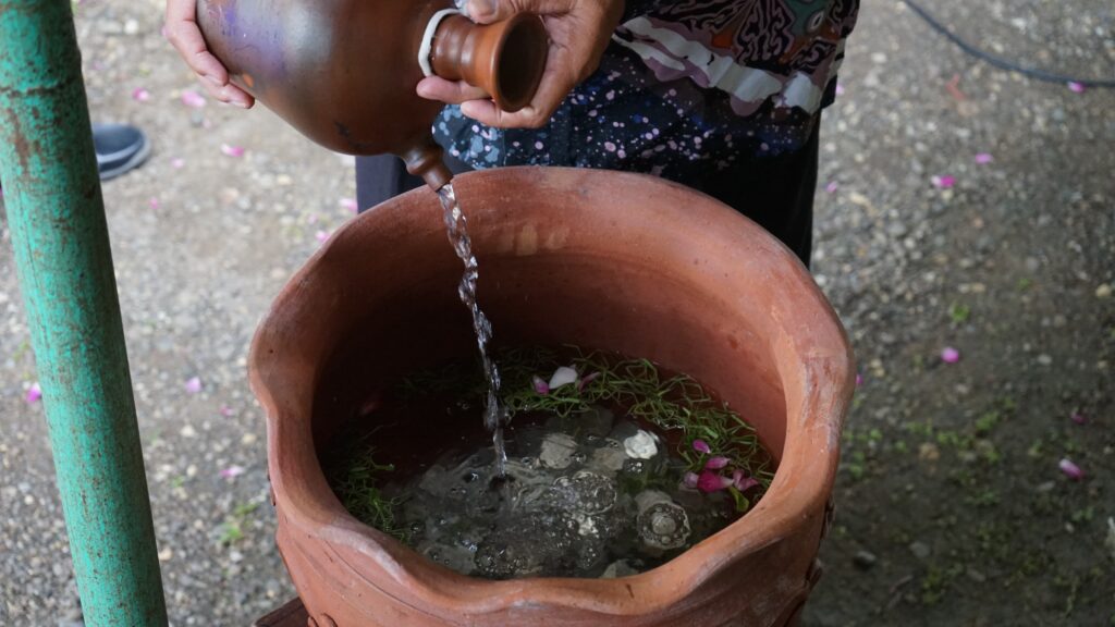 Prosesi penuangan air suci ke dalam wadah berupa gentong Foto JH Kusmargana