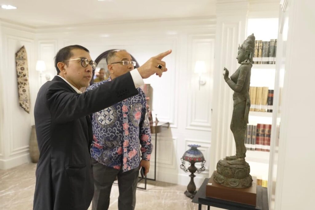 Menteri Kebudayaan RI, Fadli Zon melakukan dialog bersama tim pemugaran dari Archaeological Survey of India (ASI) di kantor Kementerian Kebudayaan, Senayan, Jakarta.