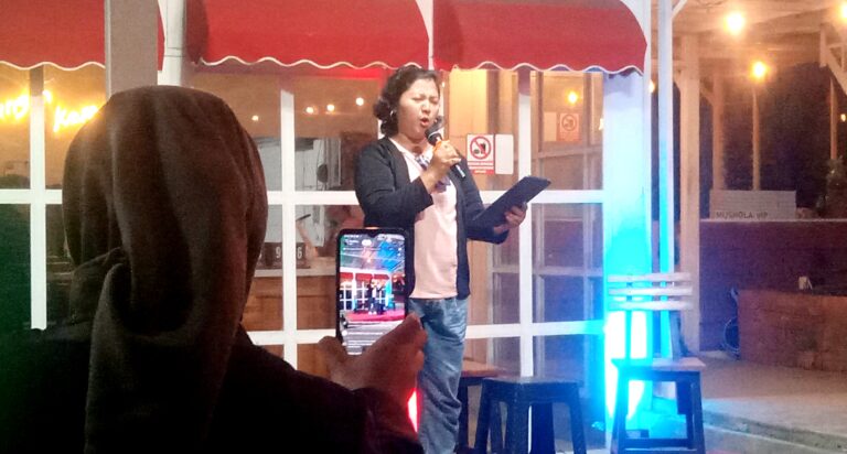 Mabur.co – Pertunjukan Selasa Sastra spesial 12 tahun yang berlangsung di Kelingan Garden Cafe, Bejen, Bantul, pada Selasa (3/2/2026), turut menjadi momen diluncurkannya novel romansa perdana karya Hanif TT yang berjudul “Mendung yang Singgah di Matamu”.
