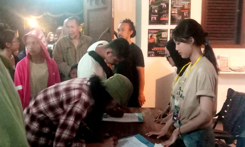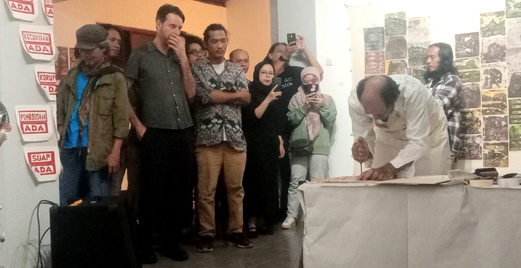Mabur.co – Seniman Syahrizal Pahlevi resmi membuka rangkaian pameran lukis cukil kayu bertajuk “Grafis Lintas Batas Jogja-Palembang (1990-2026)”, yang dilaksanakan di Museum di Tanah Liat (MDTL), Jumat (13/3/2026).